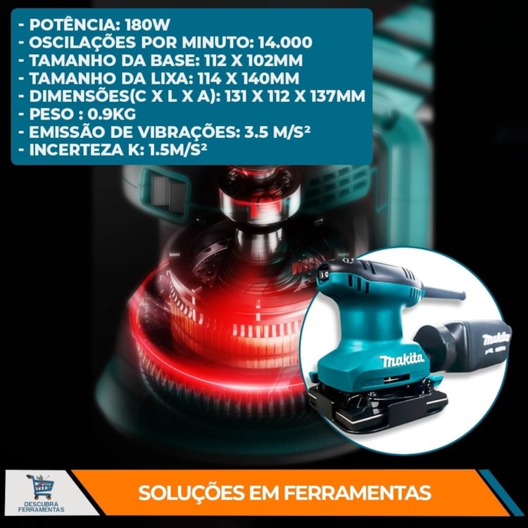 Essa é a Lixadeira orbital com 180 watts modelo BO4557 da Makita, é indicado para uso em marcenaria, carpintaria e hobbista.
