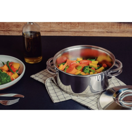 - Fácil de Limpar: O aço inoxidável facilita a limpeza, garantindo que sua caçarola esteja sempre pronta para o próximo uso.
