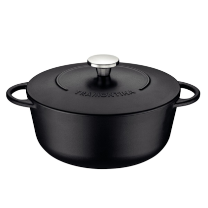 - Ferro Fundido Esmaltado: Material resistente e durável, que distribui o calor de maneira uniforme e retém a temperatura por mais tempo, ideal para selar carnes, preparar ensopados, sopas e outros pratos que exigem cozimento lento.