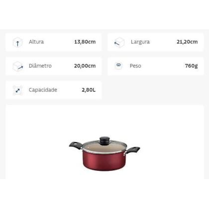 Caçarola Tramontina Turim em Alumínio com Revestimento Interno e Externo em Antiaderente Starflon Max Vermelha 20 cm 2,8 L
