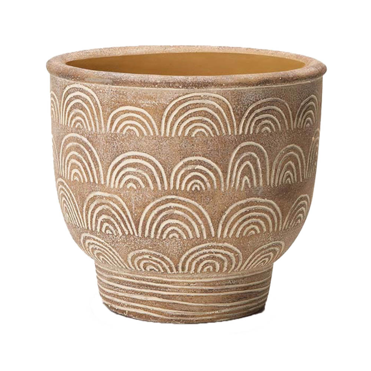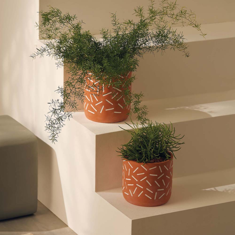 O cachepot em cimento imita a Palha de Viena, popularmente conhecida como Palhinha, que chegou ao Brasil em 1950 e se tornou queridinha na decoração. Composta com o verde das plantas, cria um canto intimista e cheio de personalidade no lar.