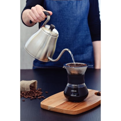 Material: bule em borosilicato, filtro em aço inox, alça de silicone.