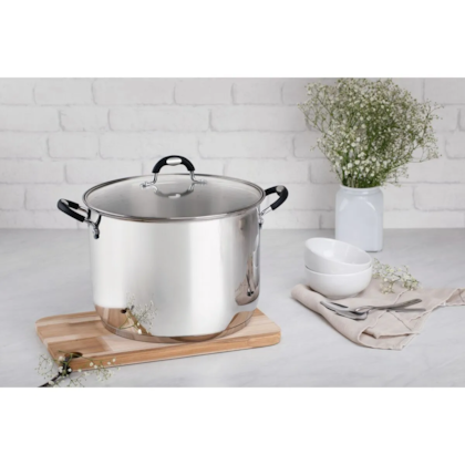 O Caldeirão Tramontina Astro Silicone em Aço Inox com Fundo Triplo com Tampa de Vidro 30 cm 15,2 L é essencial para se ter na cozinha. A peça simplifica as tarefas diárias com muito estilo e praticidade. Devido a sua profundidade, o caldeirão é uma ótima escolha para receitas que exigem bastante água no preparo, como sopas, caldos e feijoada. O produto é fabricado em aço inox e conta com tampa em vidro oferecendo mais resistência e a possibilidade de visualizar o cozimento dos alimentos. Além disso, o utensílio conta com pegador e alças antitérmicas proporcionando mais segurança no manuseio. Seu fundo é triplo, ou seja, é feito por duas camadas de aço inox envolvendo uma de alumínio (aço inox + alumínio + aço inox), sendo assim, o calor é distribuído uniformemente, proporcionando um cozimento mais rápido e deixando os alimentos aquecidos por mais tempo. O caldeirão também pode ser utilizado em diferentes tipos de fogão como gás, elétrico, vitrocerâmico ou indução. Qualidade e funcionalidade é com a Tramontina!