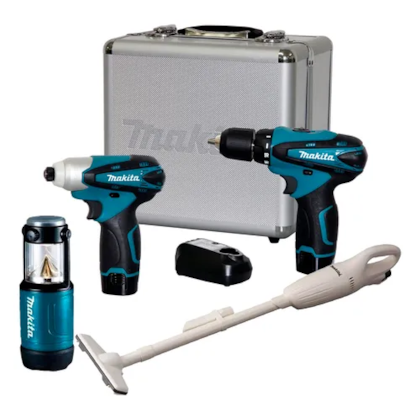 Combo Makita 12V CXT: Furadeira/Parafusadeira, Parafusadeira de Impacto, Aspirador de Pó, Lanterna e Maleta - Eficiência e Praticidade em suas Mãos