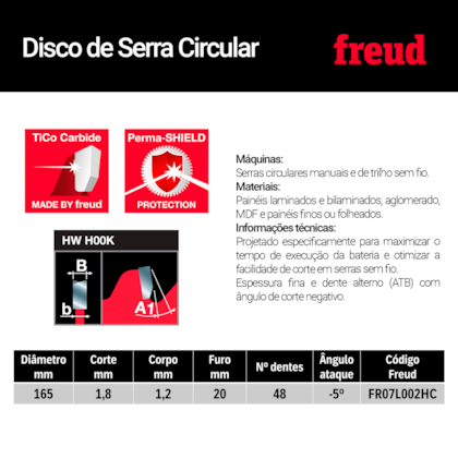 Disco de Serra para Madeiras 165mm (6 ½”)" FR07L002HC Freud - GMAD Ecommerce