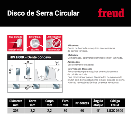 Disco de Serra Circular Freud 303mm 12" LU3C0300 - GMAD Ecommerce