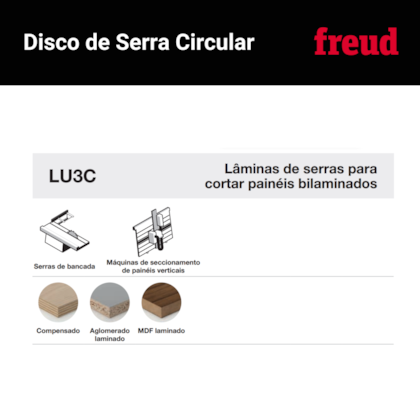 Na GMAD Ecommerce, apresentamos a solução definitiva para cortes.A linha LU3F de discos de serra circular freud oferece máximo rendimento e desempenho em cortes de melamina ou aglomerados laminados, incluindo MDF e MDP com laminação de 1 ou 2 fases.O LU3C0300, com um diâmetro de 12”, 60 dentes e espessura de corte de 3.2mm.