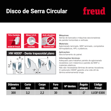 Disco de Serra Circular Freud 300mm 12" LU3F0300 - GMAD Ecommerce