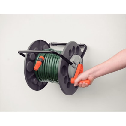 - Capacidade de armazenamento de até 55 metros de mangueira 1/2". Este é apenas um valor de referência, considerando uma mangueira de 1/2". O valor pode variar para mais ou para menos, dependendo do modelo e do diâmetro da mangueira.
