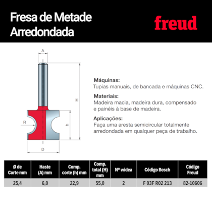 Fresa de Metade Arredondada - Freud 82-10606P - GMAD Ecommerce