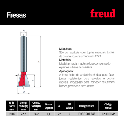 - Modelo: Freud 22-10606P (Linha 22 - Chanfradura)