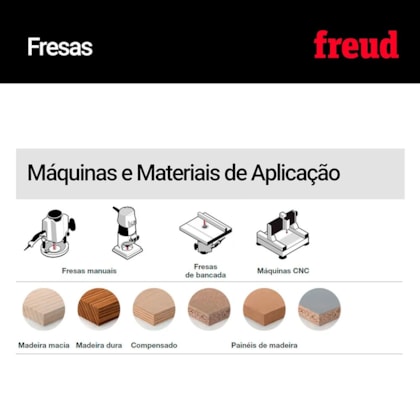 Na GMAD Ecommerce, oferecemos ferramentas de corte profissional! As fresas Freud da linha 04 são fresas retas inteiramente feitas de Carbide, evitando assim rupturas quando utilizadas corretamente, e ideais para cortes retos em madeira dura, madeira macia, MDF cru, MDF laminado, MDP cru, MDP laminado e compensado, além de acrílico para alguns modelos.