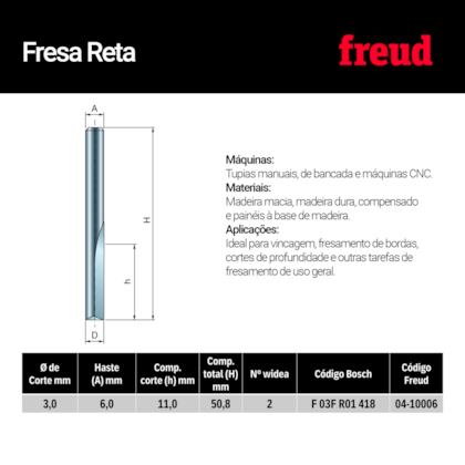 Fresa Reta Paralela Freud 04-10006P para Madeira e Acrílico - GMAD Ecommerce