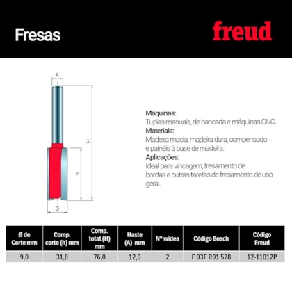 Fresa Reta Paralela 12-11012P - Freud - GMAD Ecommerce