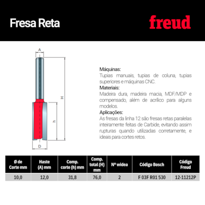 Fresa Reta Paralela Freud 12-11212P para Madeira e Acrílico - GMAD Ecommerce