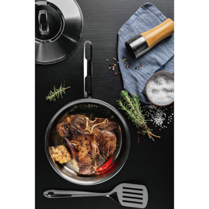 Frigideira Tramontina Solar em Aço Inox com Fundo Triplo, Tampa e Cabo 24 cm 3,3 L
