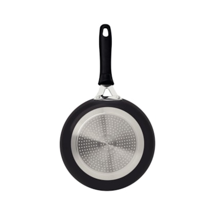 Imagem meramente ilustrativa. Recomenda-se comparar o tamanho do contato indutivo da frigideira (12cm) com o do seu fogão de indução antes da compra. Para segurança e melhor desempenho, siga as recomendações de uso do fabricante.