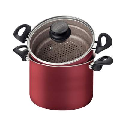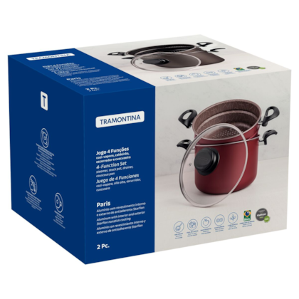 Para preparar legumes e vegetais com mais praticidade, conte com o jogo 4 funções Tramontina Paris em alumínio com revestimento interno e externo em antiaderente Starflon Max vermelho com tampa de vidro! Ele é produzido em alumínio com espessura de 1,8 milímetros e conta com tampa de vidro temperado que auxilia no cozimento dos alimentos, que é rápido e uniforme. Seu revestimento interno e externo é em antiaderente Starflon Max, característica que evita que os alimentos grudem e o torna superfácil de limpar. Para sua segurança, as alças são em baquelite e seu pegador em nylon, ambos materiais antitérmicos que não aquecem. Além de todas essas características, o Jogo 4 Funções é muito fácil de limpar e pode ser levado à máquina de lavar louças. Com a Tramontina, ficou muito mais fácil ter uma vida mais saudável e cheia de nutrientes!