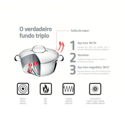 - Versatilidade Inigualável: Compatível com todos os tipos de fogões, incluindo indução, para que você possa explorar sua criatividade sem limites.