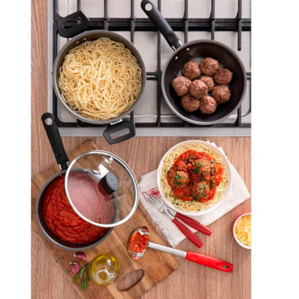 Jogo de Panelas Antiaderente Preto Brinox 5 Peças Ebony