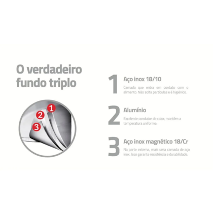 As panelas deste conjunto contam com fundo triplo, o que significa que o calor é distribuído de maneira uniforme e eficiente. Isso não apenas economiza energia, mas também assegura que seus alimentos sejam cozidos de maneira precisa e consistente.