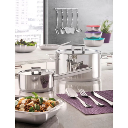 Cada panela deste conjunto é cuidadosamente construída em aço inoxidável de primeira qualidade, proporcionando resistência à corrosão e ao desgaste, garantindo uma vida útil excepcional. O acabamento brilhante adiciona um toque de elegância à sua cozinha.