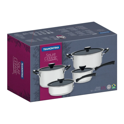 Jogo de Panelas Tramontina Solar Ceramic em Aço Inox Fundo Triplo com Revestimento Interno Cerâmico Grafite 4 Peças