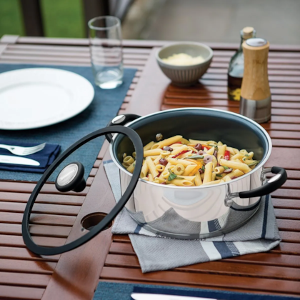 Economiza tempo e energia: o segredo está no fundo triplo (aço inox + alumínio + aço inox), que distribui o calor uniformemente, proporcionando um cozimento mais rápido. Por isso, você pode manter o fogo baixo durante todo o preparo e, assim, poupar energia.