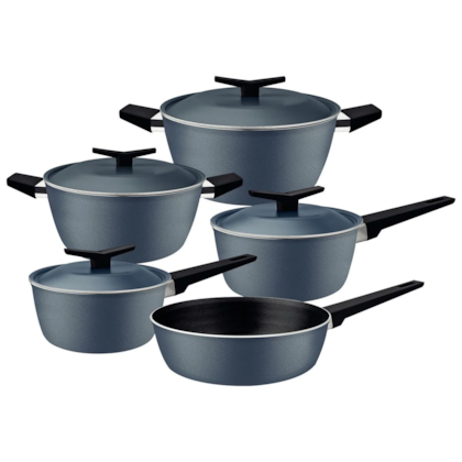 - Design Moderno e Elegante: Com um design moderno e acabamento na cor azul ardósia, o Jogo de Panelas Spezia traz um toque de sofisticação para sua cozinha.