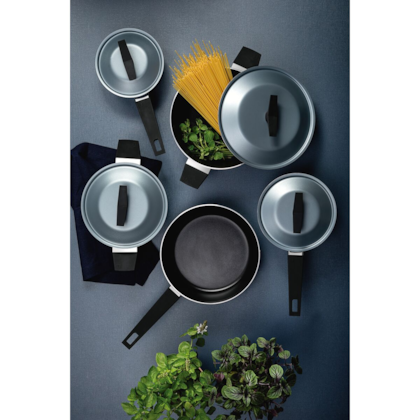Conjunto com 5 peças em alumínio com antiaderente Starflon Excellent, mais durável e fácil de limpar.