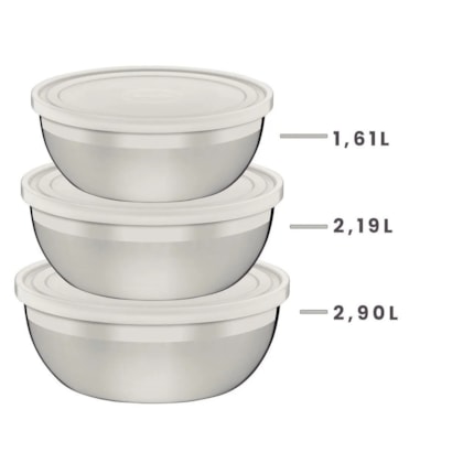 O Jogo de Potes Tramontina Freezinox em Aço Inox com Tampa Plástica 3 Peças é perfeito para armazenar e preparar alimentos. Ideal para ir à geladeira ou ao freezer, ele possui três peças produzidas em aço inoxidável. São altamente duráveis e higiênicas. O desenho sem cantos possibilita uma limpeza muito mais fácil. Além disso, pode ir diariamente à máquina de lavar louças. Possui tampa com vedação perfeita que garante uma boa conservação dos alimentos. O jogo ainda traz um design moderno e diferenciado. Possui acabamento fosco com detalhes em brilho que embeleza sua cozinha!