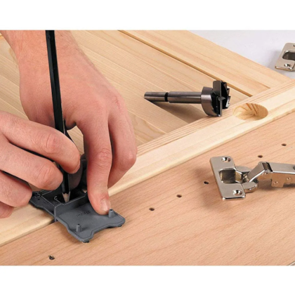 O kit gabarito de dobradiças e broca Forstner de 35mm 872800 da Wolfcraft é ideal para perfurar com precisão.