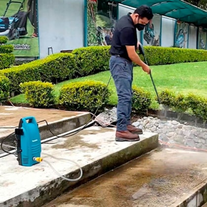 - Pressão Máxima 1450 PSI (100 bar): Força profissional que remove sujeiras mais resistentes em superfícies como concreto, veículos e maquinários