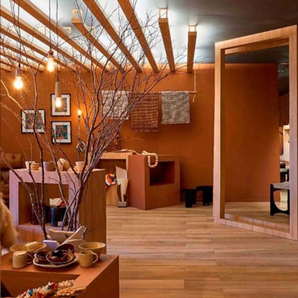 Com o padrão Ceramik, da Berneck, os ambientes ganham personalidade em um painel de madeira unicolor. Ele funde os tons da argila e do tijolo com a elegância do rose, propiciando uma cor quente, aconchegante e ao mesmo tempo delicada. Perfeito para móveis, interiores residenciais ou espaços públicos. Os tons terrosos prometem permanecer em evidência pelos próximos anos, principalmente em combinações com nuances madeiradas e outros unicolores..