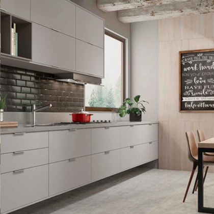De tonalidade neutra, toque aveludado e textura superfosca, esse padrão tem base levemente aquecida e ainda conta com a surpresa de um desenho sutil de Quartzo Stone.