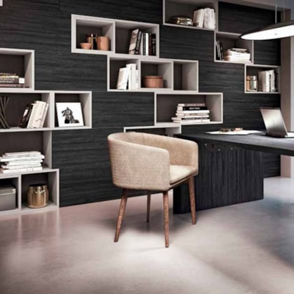 Acabamento que remete aos fios entrelaçados, ressalta a trama dos tecidos, valoriza padrões unicores e traz textura de lâmina faqueada.