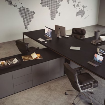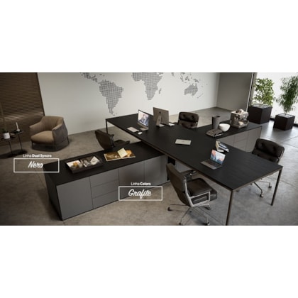 Toda a originalidade e movimento dos veios da Nogueira em contraste com a cor preta, perfeito para dar um toque de requinte e sofisticação.