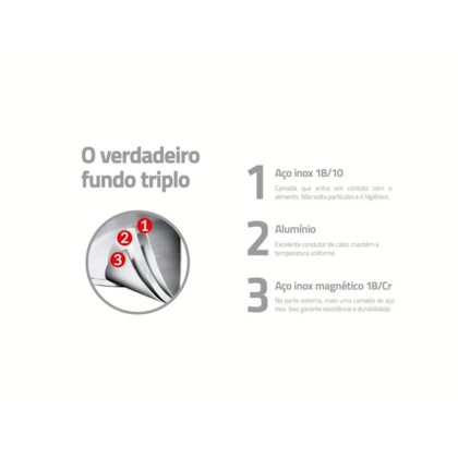 - Fundo triplo exclusivo (aço inox + alumínio + aço inox)