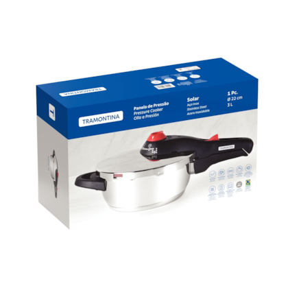 A Panela de Pressão Tramontina Solar em Aço Inox com Fundo Triplo e 5 Dispositivos de Segurança 22 cm 3 L é mais do que apenas uma panela de pressão. O seu diferencial está no Fundo Triplo, uma característica que a distingue das demais panelas disponíveis no mercado.
