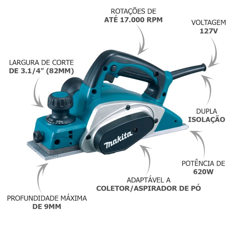 Adicione a Plaina Elétrica 620W KP0800 da Makita ao seu carrinho na GMAD e aproveite a qualidade e desempenho que só a Makita pode oferecer. Compre agora e tenha a ferramenta ideal para suas necessidades profissionais!