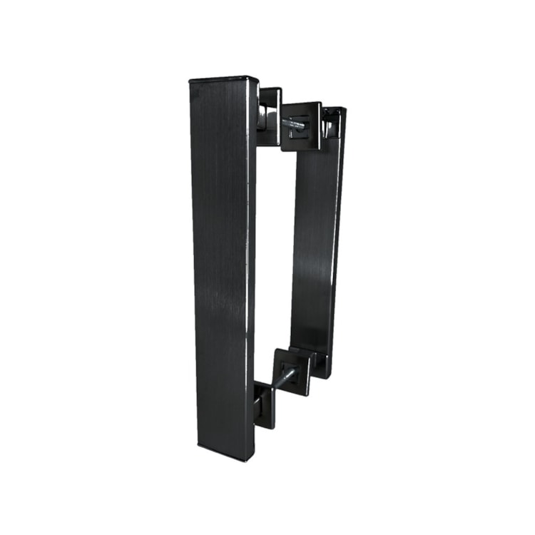 - Instalação em par: O puxador duplo é instalado nos dois lados da porta. Confirme o alinhamento dos furos em ambos os lados antes de fixar.