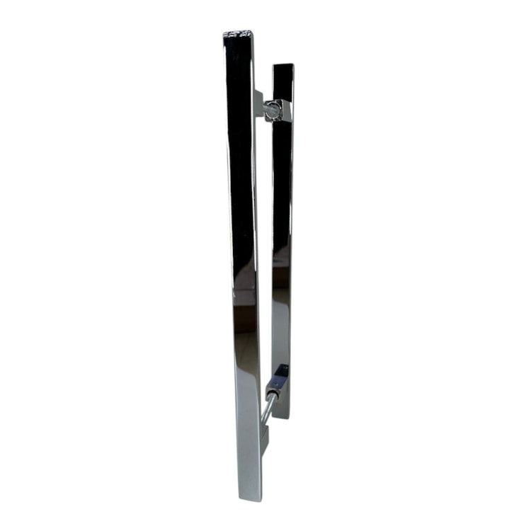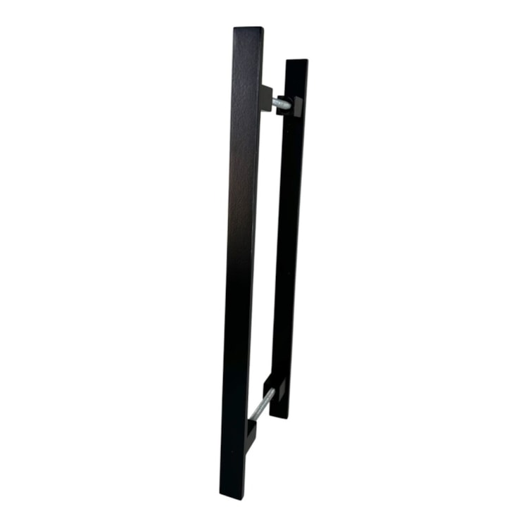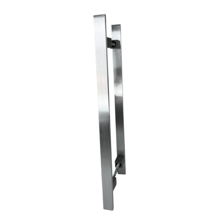 - Instalação em par: O puxador duplo é instalado nos dois lados da porta. Confirme o alinhamento em ambos os lados antes de fixar definitivamente.