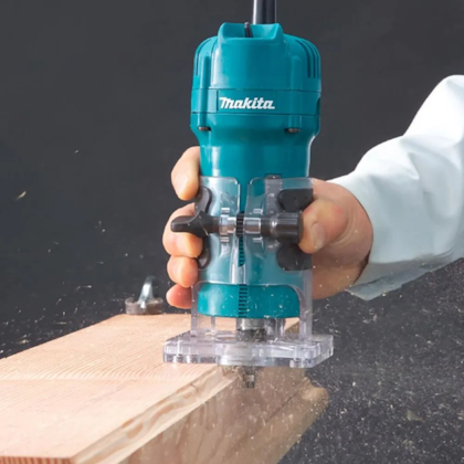 Tupia Makita 3709 com 530W e base articulada, ideal para cortes precisos em laminados e entalhes em madeira. Design ergonômico, punho emborrachado e ajuste suave de profundidade.